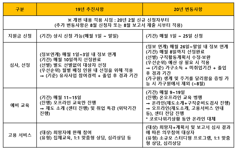 ■ 2020년 청년구직활동지원금 주요 개편 내용