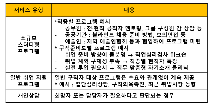 □ (서비스 내용) 직종·구직준비도 등에 따른 유형별 프로그램 운영