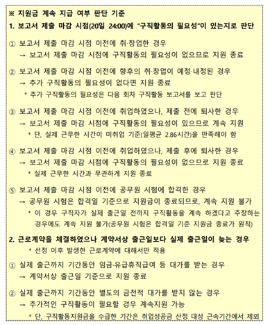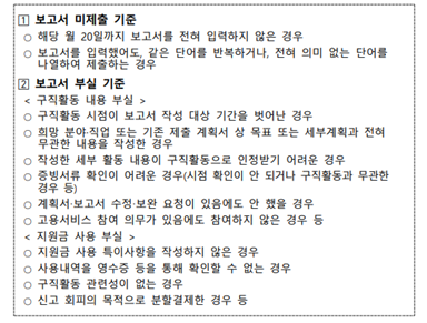 * <구직활동 인정범위>는 구직활동계획서 심사 시 기준과 동일