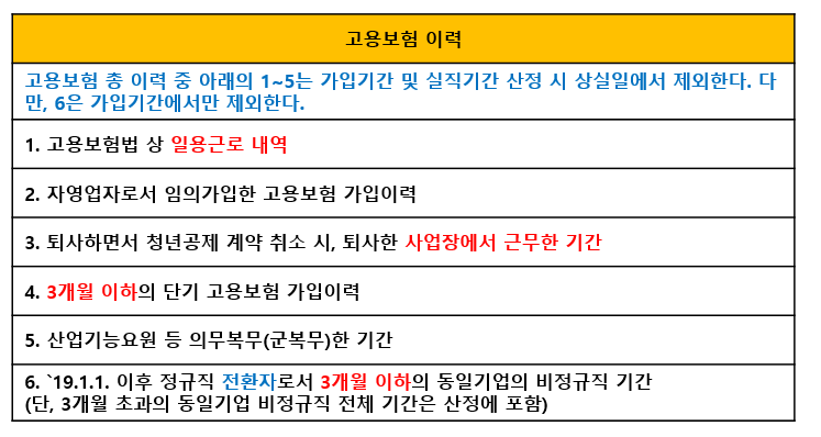 나. (고용보험 이력) 정규직 취업일 현재 다음 각 호의 어느 하나에 해당하는 자